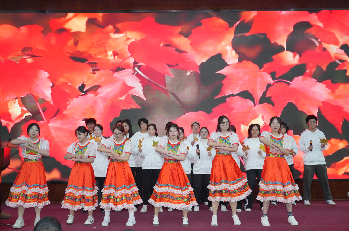 英俄2501班任丽娟等二十余位同学共同演绎俄语歌舞《ЛИСТЬЯ КРУИТ ветер》(风卷落叶),以欢快的旋律与舞姿展现异域风情,为当晚的活动画上圆满句号。