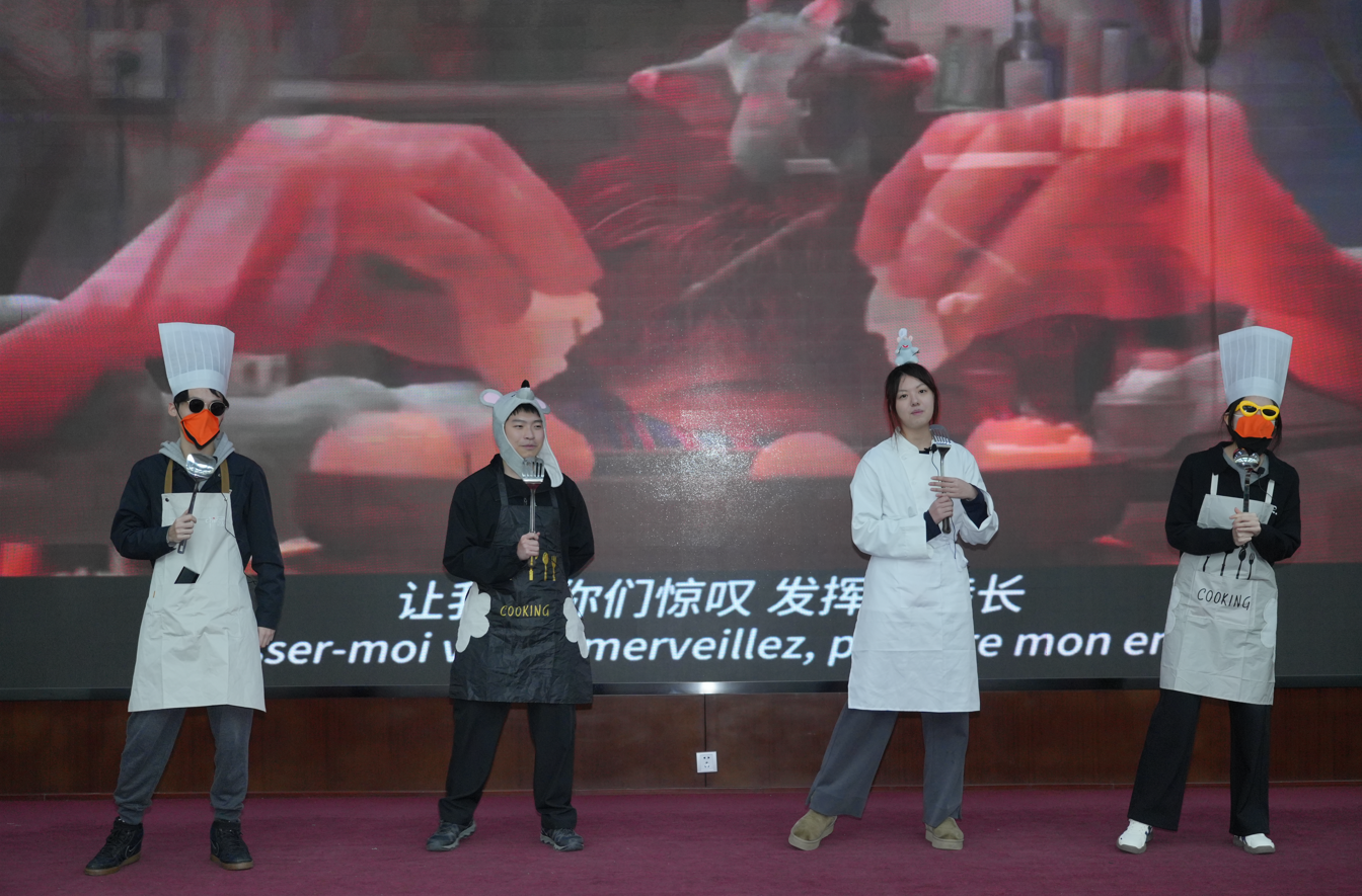 刁溢佳等四位同学带来充满法式风情的歌舞表演,《料理鼠王》中的美妙音乐和灵动的表演为全场师生带来一场歌舞盛宴。